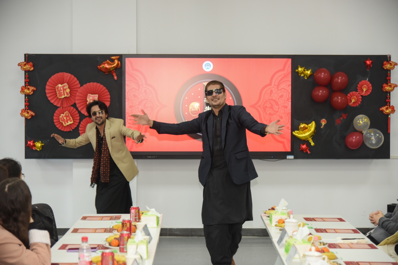 越南籍留学生阮德芳庄,用汉语分享了自己来中国后的学习情况,在老师和同学的关心帮助下,收获了知识,也成长了很多。来自巴基斯坦的留学生Billy表示很喜欢中国的文化,在这里交到了很多来自不同国家的朋友,拥有了许多美好回忆,并向大家介绍了自己国家的传统节日。来自巴基斯坦的Jack和Rafaqat还献上充满异域风情的民族舞蹈,将全场气氛推向高潮。