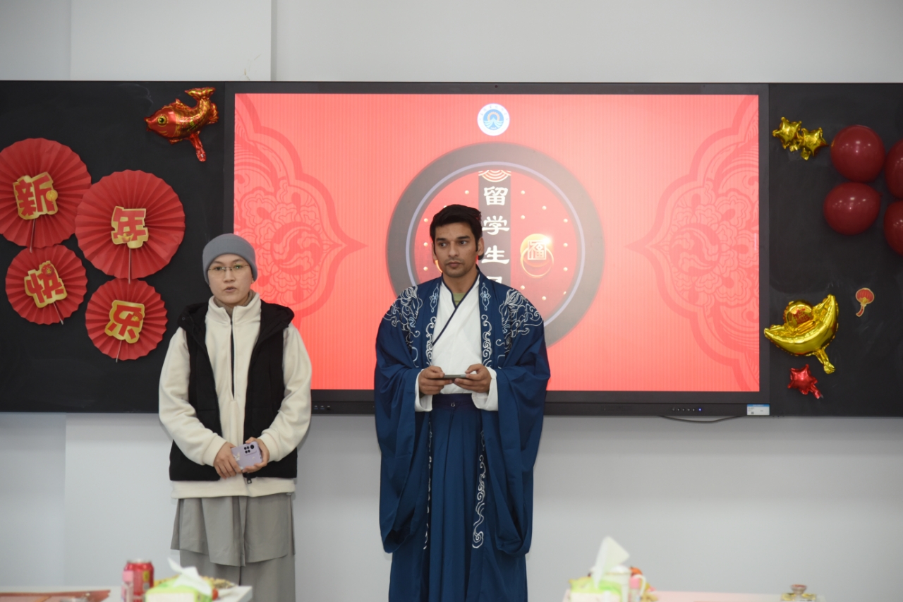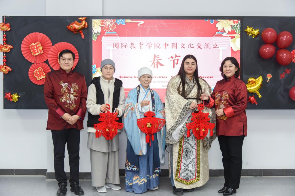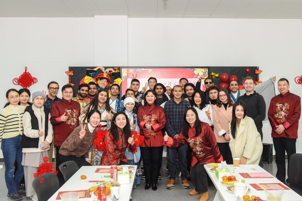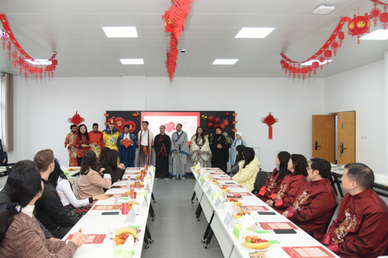 1月5日下午,校长夏新颜、副校长任枫轩在太阳成集团tyc9728参加了“中华文化交流系列之春节”活动,同我校外教、留学生欢聚一堂,共迎新年。国际合作交流处及太阳成集团tyc9728全体人员、外籍教师和来华留学生等40余人参加了此次活动。