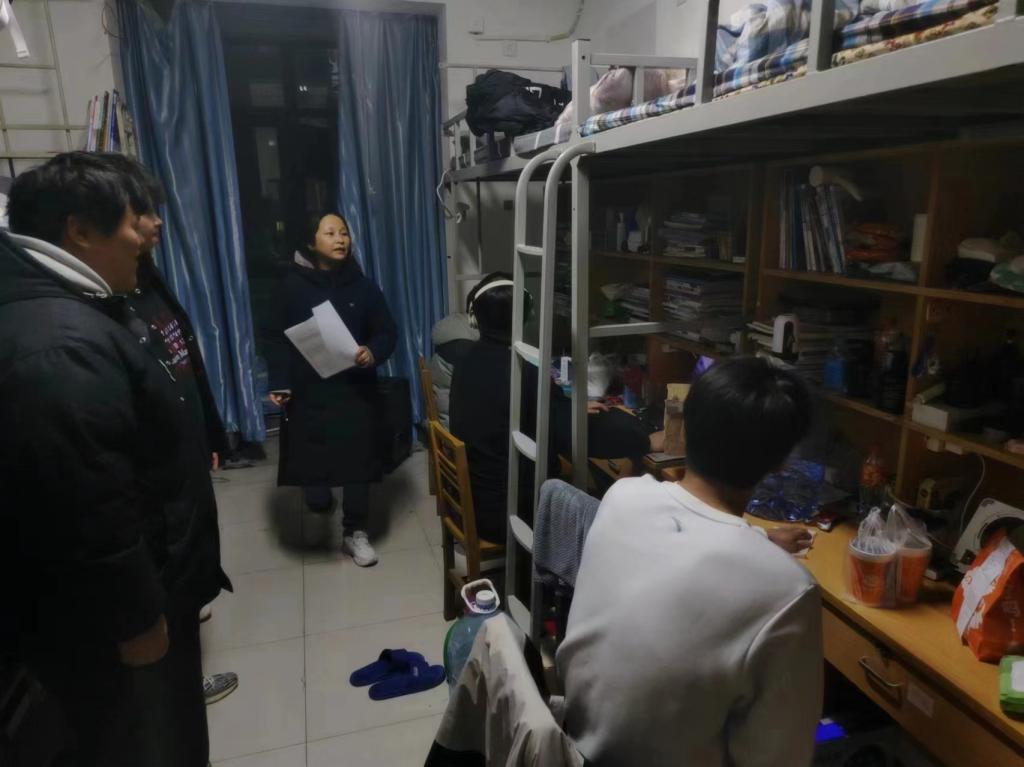 3月8日副院长于瑾带领办公室老师对国教院办公及实训场所的消防、水电、围墙等各项安全设施设备进行全面安全排查,力求做到全覆盖、无缝隙、不留白,将安全工作落到实处。党总支副书记董岳磊带领全体辅导员对学生寝室的安全、卫生等进行全面检查,实地进行寝室安全教育。老师们以春节前发生的真实事件为案例,向学生强调了寝室消防安全的重要性,提醒学生加强安全底线意识,遵守学校各项安全管理制度。辅导员对检查中的安全隐患问题进行了单独教育引导,督促学生立即整改。