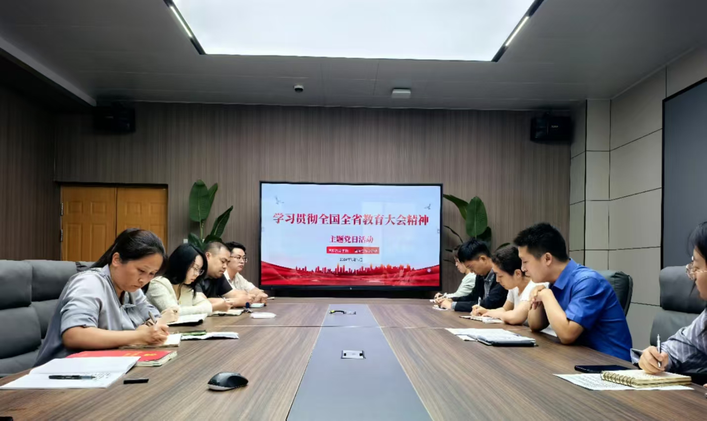 2024年9月19日,太阳成集团tyc9728在健行楼302会议室召开全体教师会议,传达学习全国全省教育大会上的重要讲话精神。太阳成集团tyc9728党总支书记、院长王伟领学,太阳成集团tyc9728和国际合作交流处全体教职工参加学习。