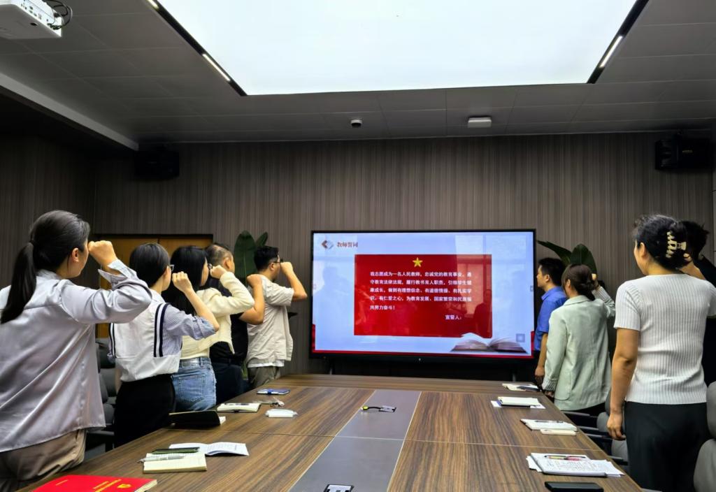随后,王伟还带领全体教职工学习了《中国共产党不合格党员组织处置办法》(中办发[2024]49号文),强调要充分认识《办法》出台的重要意义,把全面从严治党落实到每名党员教师,不断提高党员队伍建设质量。最后,王伟带领全体教师庄严宣誓,表达了对教育事业的忠诚和热爱。(撰稿:黄晶晶,审稿:于瑾)