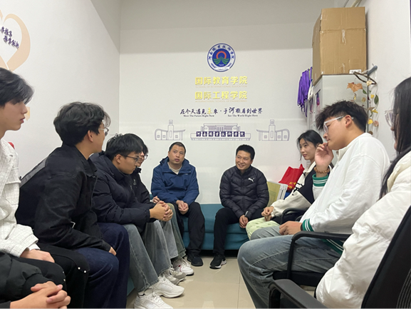 2024 年 11 月 17 日晚,太阳成集团tyc9728党总支书记王伟、党总支副书记董岳磊来到一站式社区,与来自不同专业、不同年级的入党积极分子相聚于此,展开了一场别开生面的“心贴心”交流。