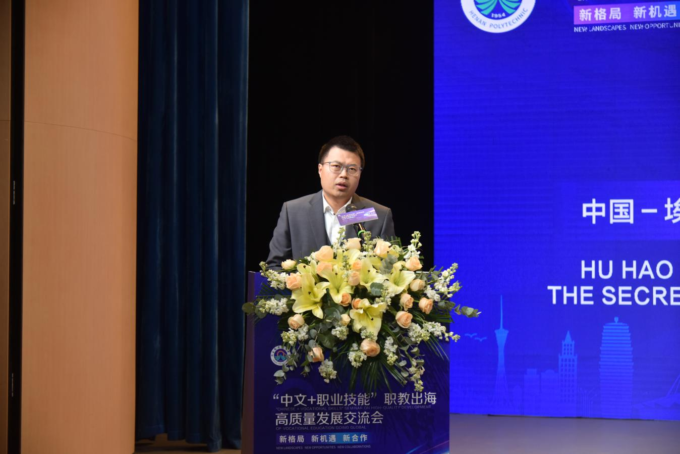 埃塞俄比亚劳动与技能部部长顾问哈格斯先生在致辞中高度赞扬了中国在职业教育领域取得的显著成就,肯定了“中文+职业技能”项目对高素质技能人才培养和经济繁荣发展的意义,表达了中埃双方进一步深化合作的愿景。他希望,双方能够在继续教师培训、课程开发、学生交流等方面展开深入合作,共同推动“中文+职业技能”项目的落地实施,为埃塞俄比亚培养更多具备中文沟通能力和职业技能的国际化人才。