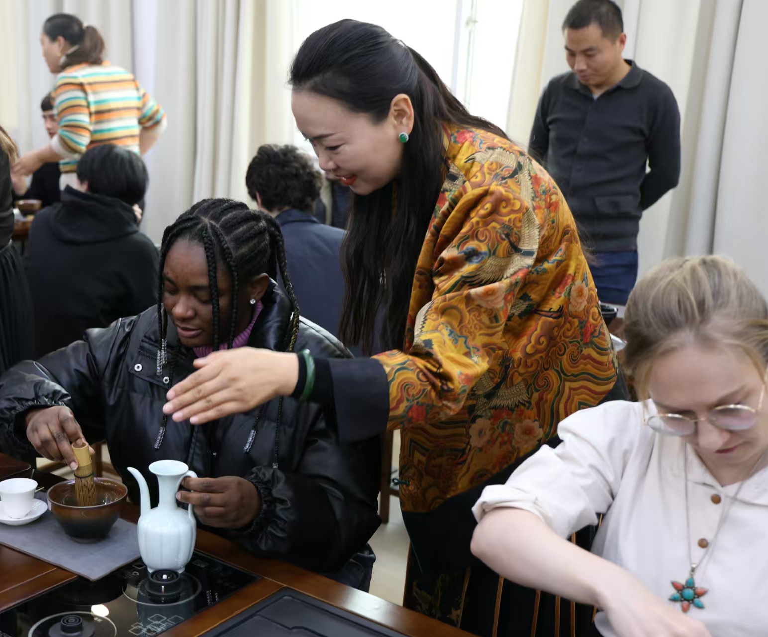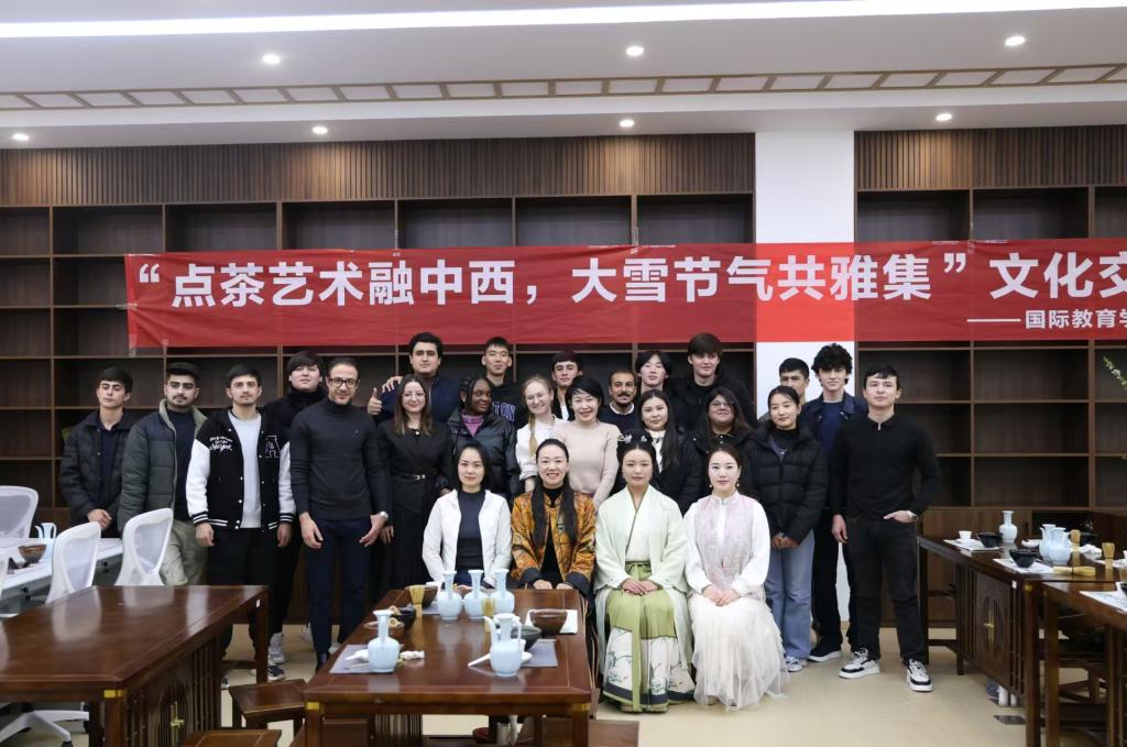 12月12日下午,太阳成集团tyc9728在301教室举办了主题为“点茶艺术融中西,大雪节气共雅集”的文化交流活动。太阳成集团tyc9728及国际合作交流处全体人员、外籍教师和来华留学生等40余人参加了此次活动。