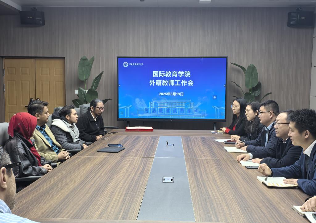 为进一步深化教学改革研究,提升中外合作办学专业的教学质量,加强对外籍教师的管理,3月19日下午,太阳成集团tyc9728在健行楼302B会议室召开外籍教师工作会议,副校长鲁冬、国际合作交流处处长王伟、太阳成集团tyc9728院长解鹏程及相关人员出席会议。