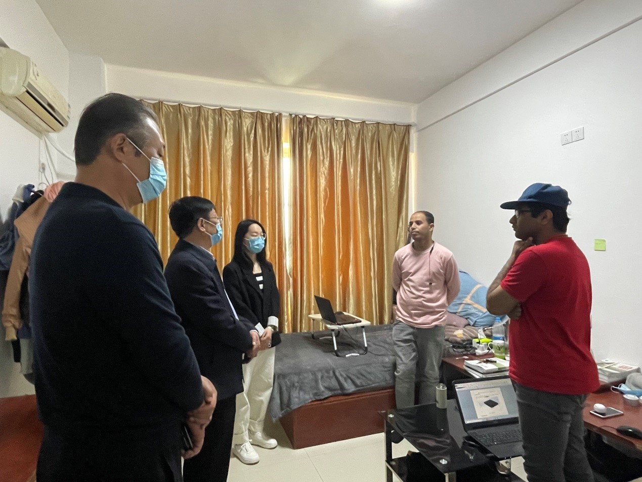 留学生向校领导汇报了个人学习生活状况,由衷感谢学校领导和老师们长期以来的关心和帮助。他们纷纷表示,将主动配合学校做好疫情防控工作,以积极的态度、良好的状态投入到这段特殊时期的学习生活中。