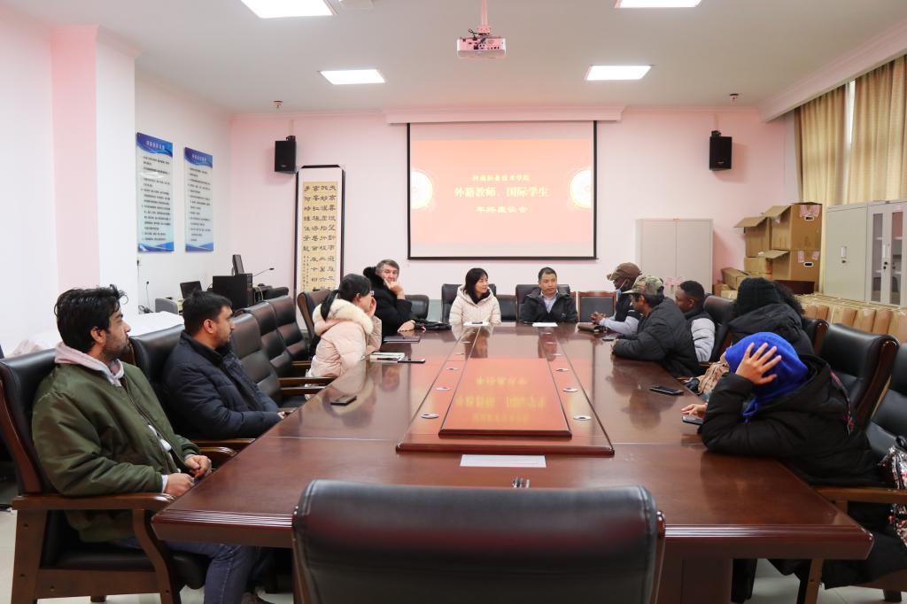 2021年12月24日下午,太阳集团网tyc9728外籍教师、国际学生年终座谈会在行政楼512会议室举行。合作交流处(太阳成集团tyc9728)全体成员及外籍教师、全体留学生参加了会议。