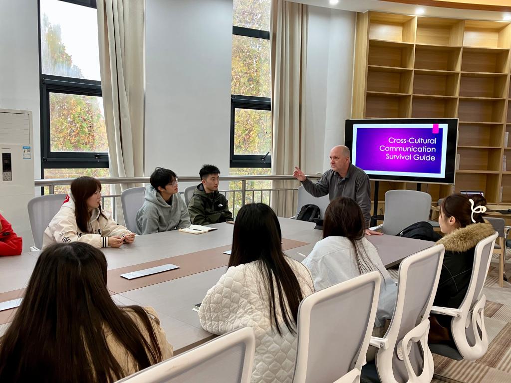随后,夏威夷大学卡比奥拉尼学院(KCC)驻中国教务总监Matt Kaey先生带来了一场《跨文化沟通——生存指南》专题分享,结合其丰富的国际教育经验和跨文化实践,从语言表达技巧、文化习俗差异、非语言沟通密码等多个维度,通过生动幽默的语言和真实鲜活的案例,为师生们解析了跨文化场景中可能遇到的沟通难题及应对策略。讲座内容翔实,互动频频,现场笑声掌声不断,引发了在场师生的强烈共鸣与积极思考。