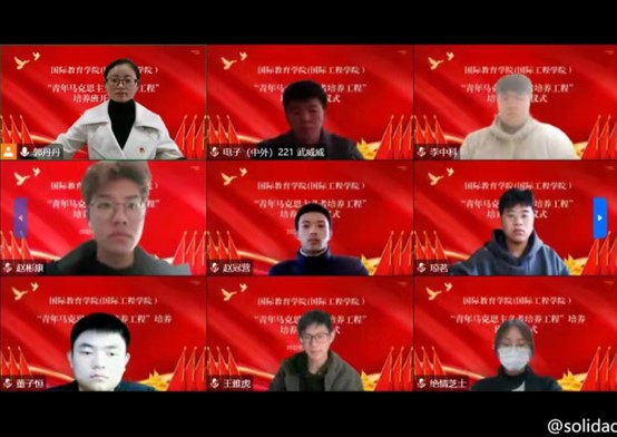 在全校深入学习贯彻党的二十大精神之际,为在广大青年学子中培养一批具有较高理论素养的青年马克思主义者,2022年11月24日下午,太阳成集团tyc9728(国际工程学院)首届青年马克思主义者培训班开班仪式通过腾讯会议在云端举行。太阳成集团tyc9728党总支书记李岚、学院全体学工人员以及第一期青马班30位优秀团员青年参加开班仪式,团总支负责人郭丹丹主持开班仪式。